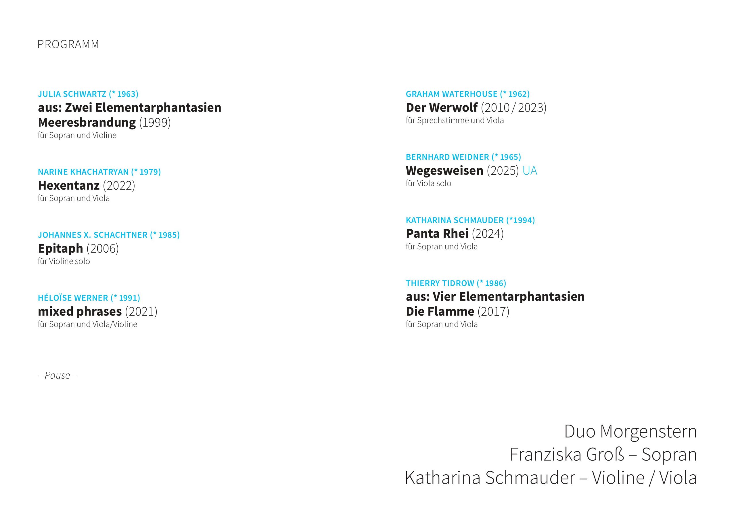Werke von Julia Schwartz, Narine Khachatryan, Johannes X. Schachtner, Héloïse Werner, Graham Waterhouse, Katharina Schmauder, Bernhard Weidner (UA), Thierry Tidrow